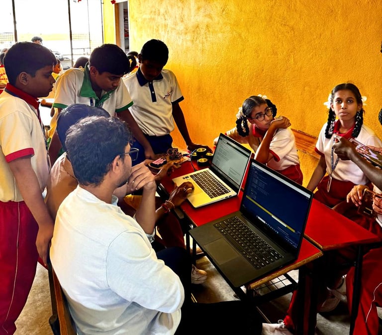 For school students we run age-appropriate workshops that teach fundamentals of electronics, programming, and design. For engineering students we provide guided support for college projects, prototypes, and capstones.