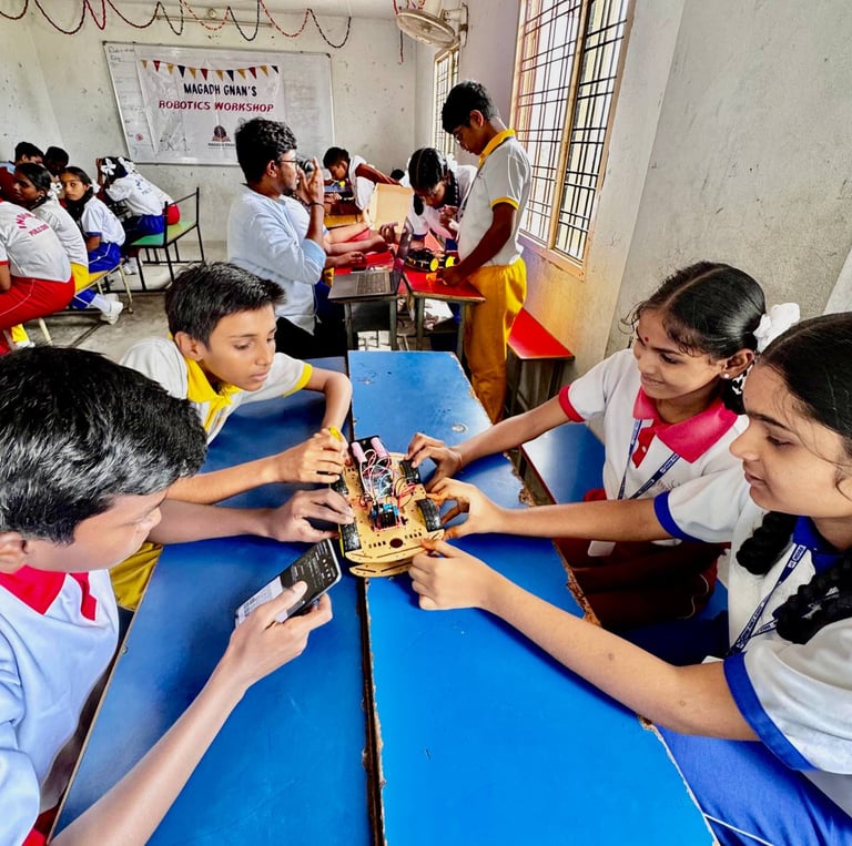 Magadh Gnan brings practical, hands-on robotics education to students across schools and colleges. We focus on experiential learning: building, coding, and iterating not just watching.